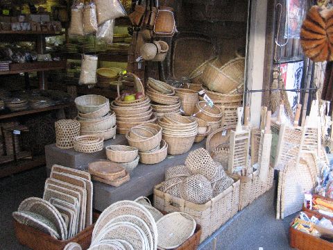 薬屋さんに竹細工の店とまだまだ懐かしい建物が残ります。