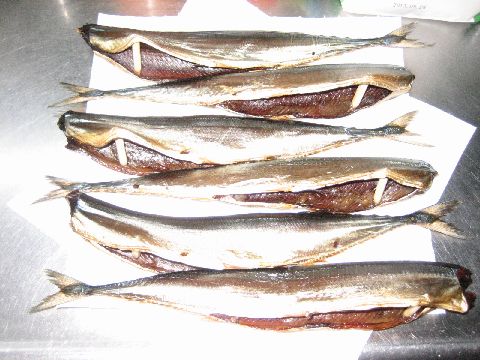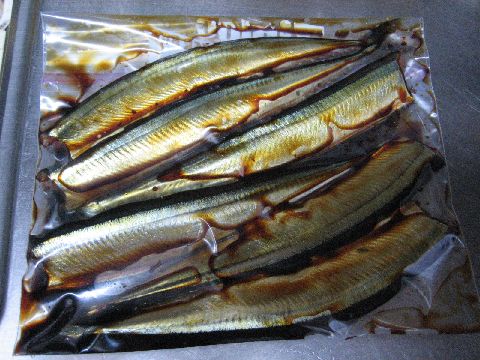 秋刀魚の照りがなんともいえませんね、これですでに24時間燻製をした状態