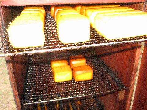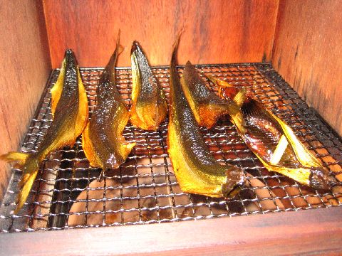 食べるまでにはまだ一日以上燻製を続けます。よりよい風味を出すためにまだまだ我慢です。