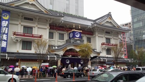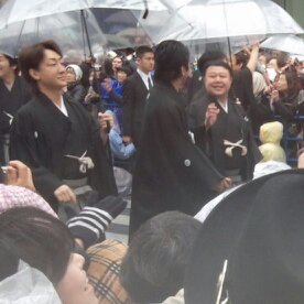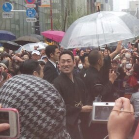 雨の中にもかかわらず前が見えない程の人出 やっと見えた歌舞伎俳優 これがお練りかぁ!