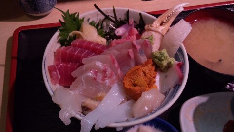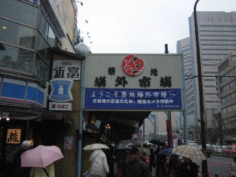 昼食は築地の場外市場でリズナブルにおまかせ丼1500円也 築地本願寺で参拝