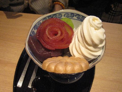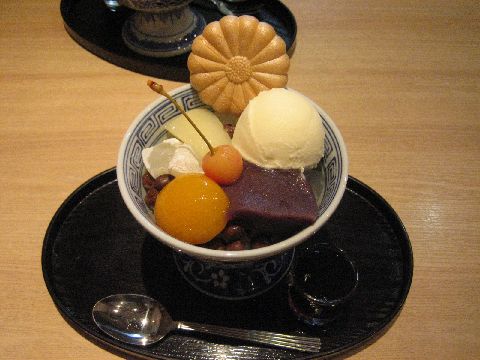 かっぱ橋道具街で小休止、おいしいあんみつをいただきました。