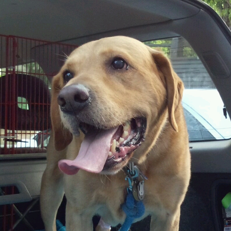 やっと終わって待合室に出ときには全員を帰した後で車に戻るもランニング後のハァハァハァと舌は伸びたまんまのレオ蔵くんでした。(笑)