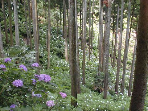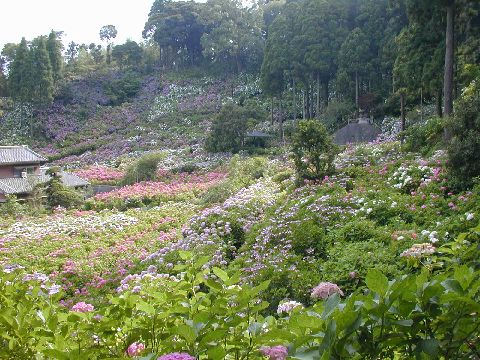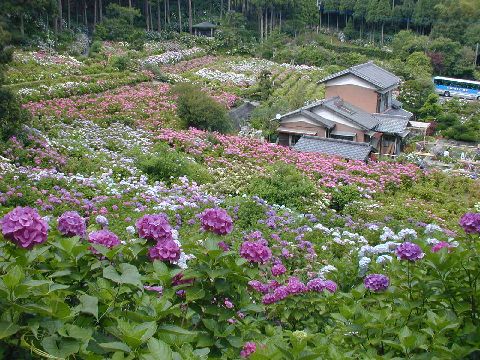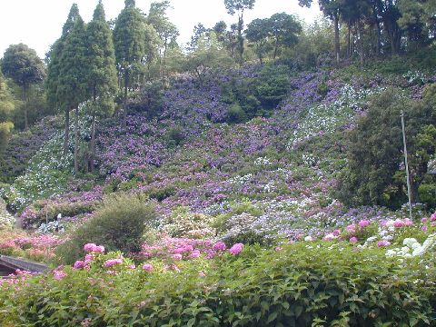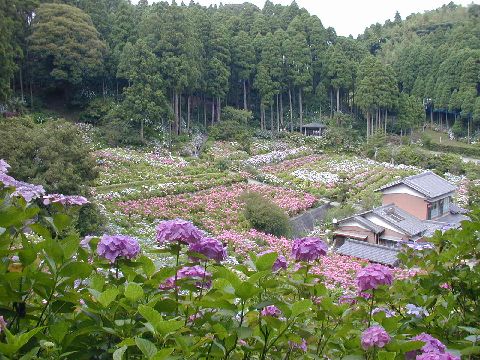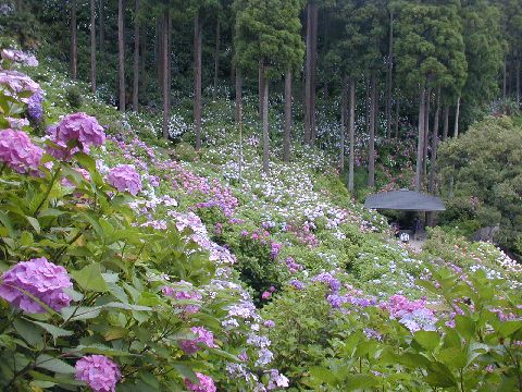 個人宅の裏山斜面一面に150品種一万株のあじさいが咲き乱れています。