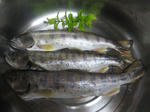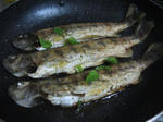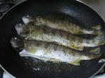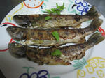 冷凍しておいた大きめの山女魚、見た目はいまいちですが好みできつく焼き上げました。