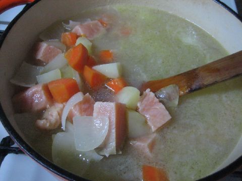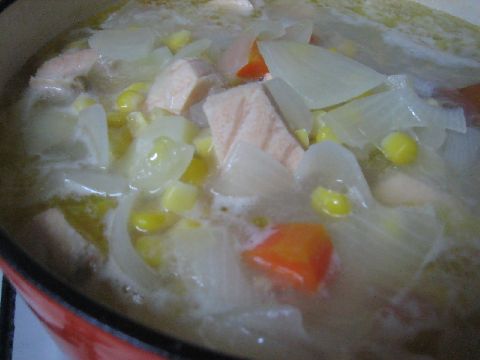 サーモン+コーン入りカレーを作りました。