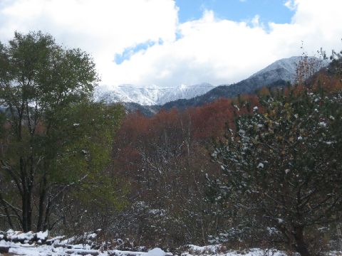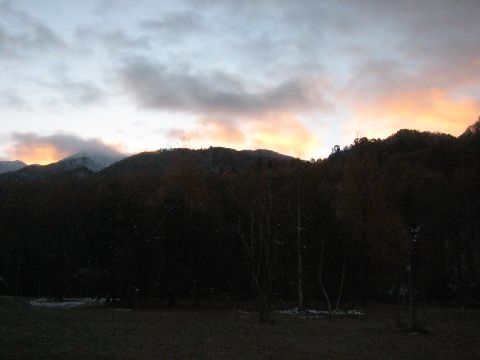 山の朝はいつでも気持ちがいいがぁ!寒い・・・・朝焼けが綺麗