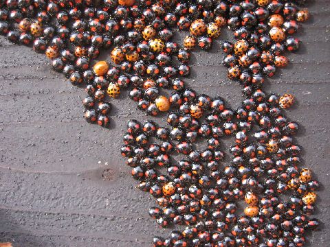 てんとう虫の冬眠???初めて見たこの数!!! みんな生きているんですね。