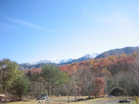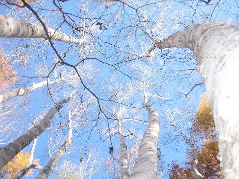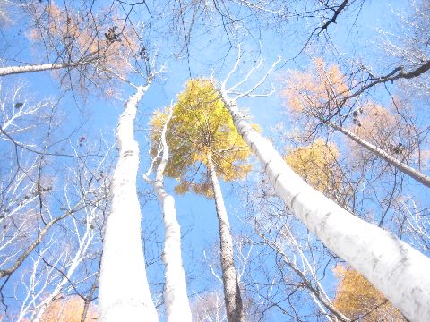 空は真っ青です。白樺林に紅葉と澄んだ青空・・・・・夏とは違った心地よさです。
