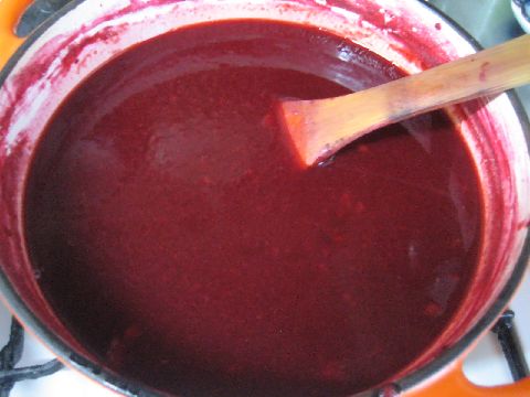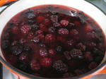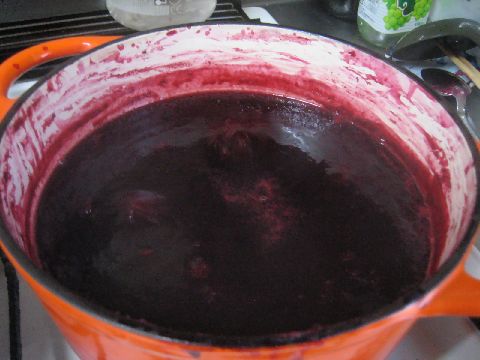 冷凍したブラックベリーを鍋に入れ水を加えて煮ていきます。