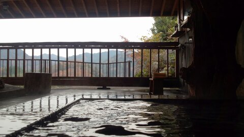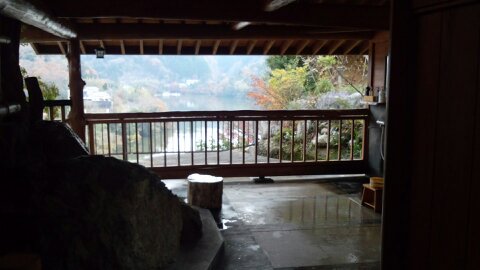 この日の男風呂は露天です。食事は混んでいるがまたも独り占め温泉