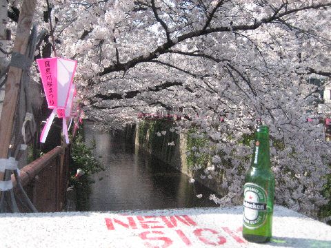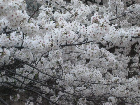 平日にもかかわらず大勢の人で賑わっていました。さくらは満開寸前です。
