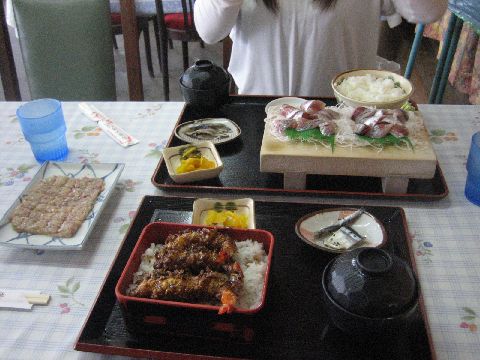 注文は2点盛り定食、あじのたたき単品とエビ天重