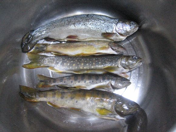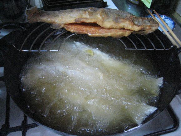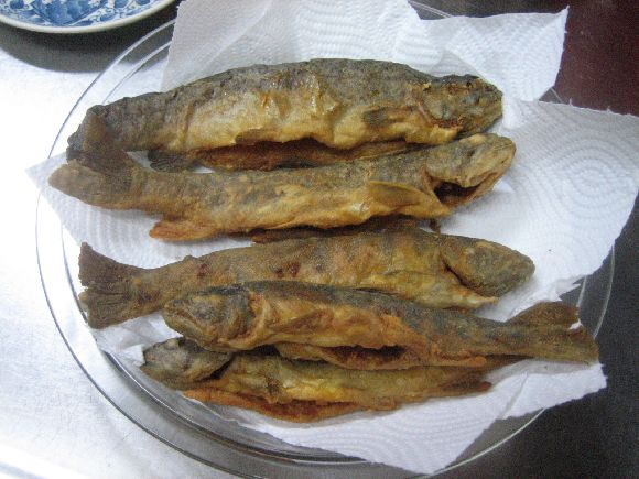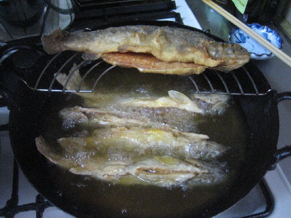 魚の唐揚げ美味しそうに出来ましたね、イワナやアマゴなんかは小さいほど美味しいですね、私の所では小麦粉ですがやはり低温で泡の無くなるまでゆっくり揚げます。
