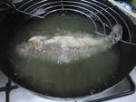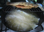 温めた天ぷら油で中火程度でじっくりと骨が柔らかくなるまで揚げていきます。