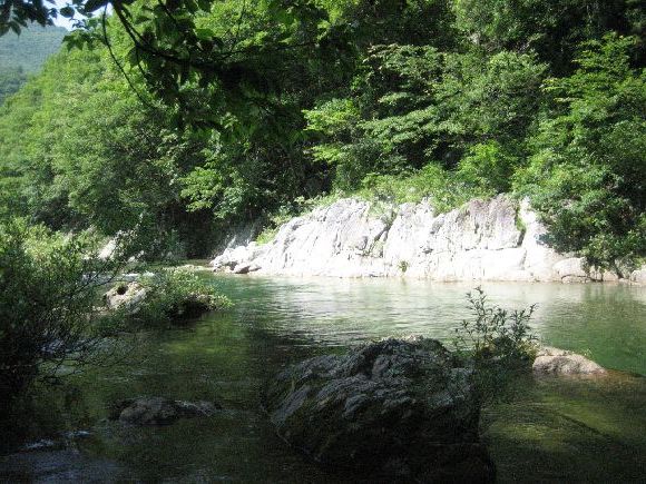 良いロケーションですね、アユ釣りなんかに良さそうな川ですね、長い仕掛けのテンカラも出来そうです。