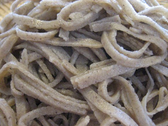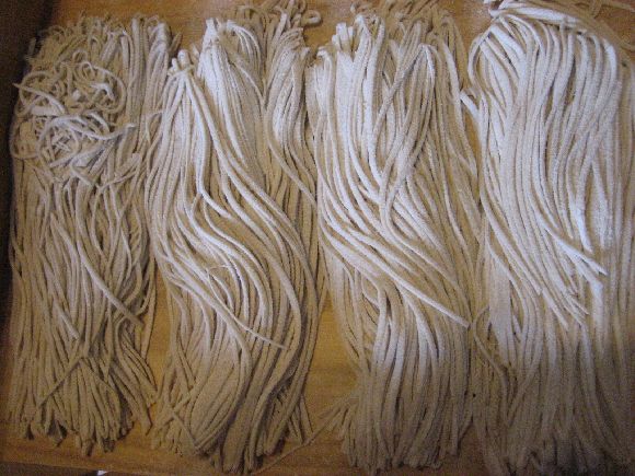 味は良いのですがご覧のとおり切りと茹でに失敗をしてしまいました。太さも長さも不揃いな仕上がりになってしまいました。残念! 次回はこの反省点を生かして焦らずにぶちたいと思います。