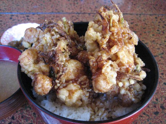 貝柱のかき揚げ丼、ボリュームがありますね、美味しそうです。