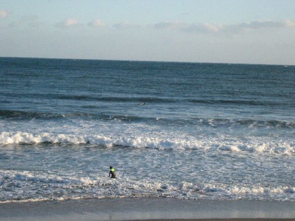 勝浦の海は冬の装いですがサーファーは腕のいいメンバーだけです。