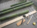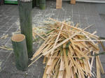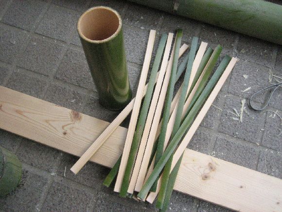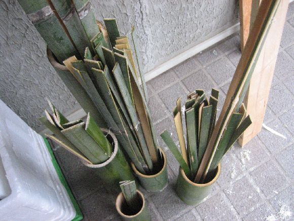 編み込みにまでまだまだなのにすでにこの切りくずです。先に油抜きとか製作手順がいろいろあるらしいのですが青竹細工は魚籠などには問題ないようですのでこのまま進めます。
