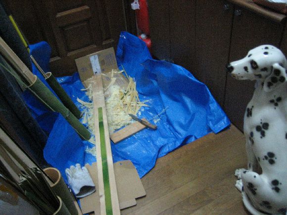 割った竹を薄くする作業をするも翌日になって眺めるとまだ肉厚状態(笑)