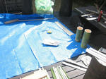 天気の時は気持ちがいい庭先で・・・しかし進み具合は早くならない。