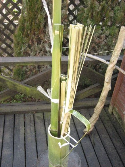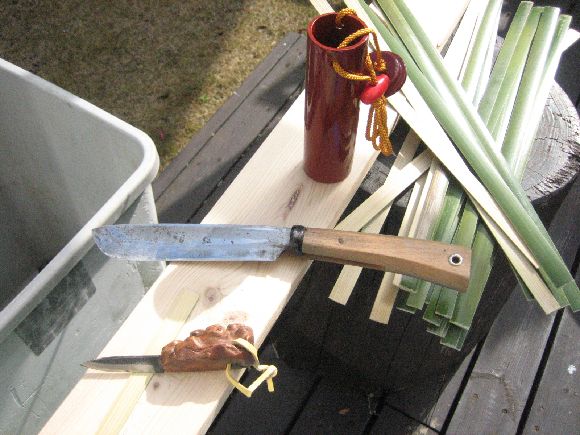 革の手袋は怪我の防止に必ず必要で竹を薄くするのに鉈の刃はよく研ぐこと。