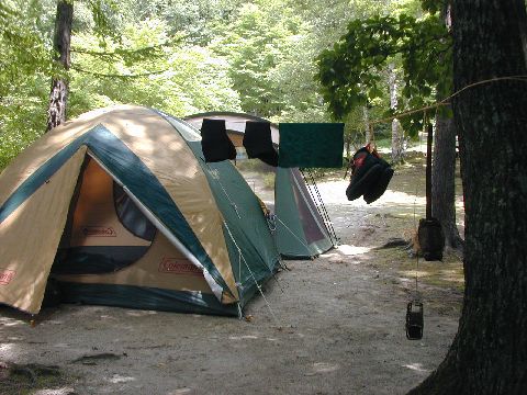 テントの脇には濡れた渓流装備が干してあります。魚籠が干してあるということは大小問わず釣果は有ったということです。お手頃サイズ。