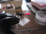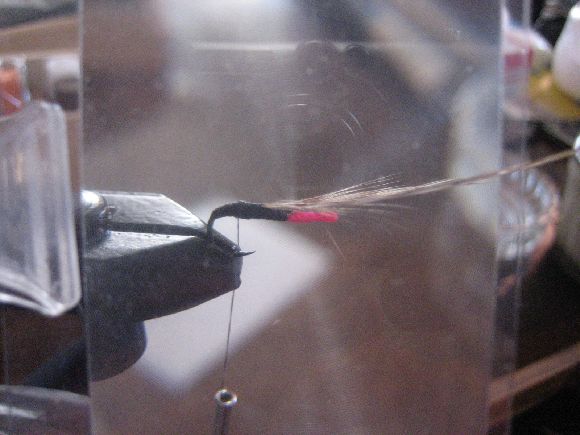 もともとはハックルの元の部分が長すぎて処分するのももったいないので逆さ毛鉤を巻いてみました(^_^;)