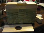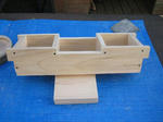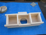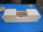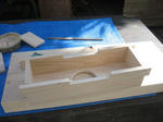 センターの切込みをノミとのこぎりで試みたらノミを叩いた瞬間に前面の板が割れてしまい早々に前板の作り直しです。結局は糸鋸とヤスリで仕上げました。