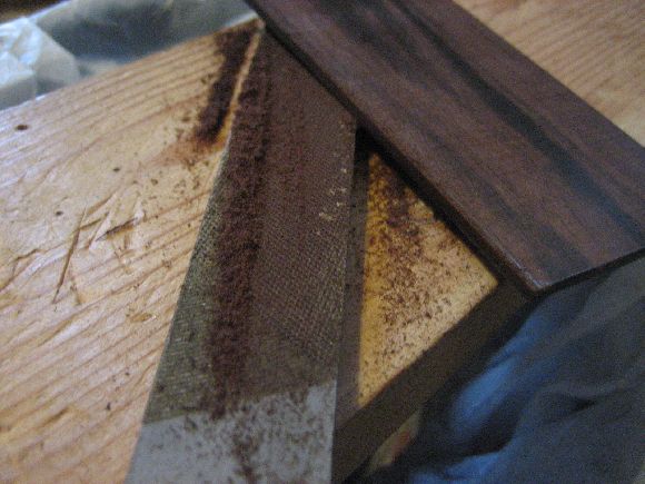 丁寧にヤスリでサイズを修正。黒檀の色や木目がとても好きなので何とかこのまま使用したい。