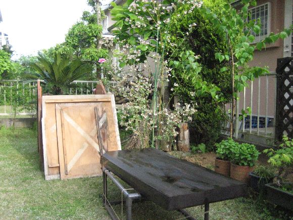 ついでに無垢板のテーブルもメンテナンスします。手すりと濡れ縁は以前の高い防腐剤の残りで仕上げて床は今回購入した安い防腐剤です。やはり塗上がりの艶は別物ですがこれは仕方ないですね。塗の回数を増やすことで我慢をしましょう。