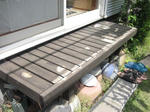 油性同士なので少々手抜きをしつつ磨きました。一番の注意は手すりの合わせ部分の汚れ、砂やほこりを金属ヘラで丁寧に取り除き防腐剤を染み込ませます。