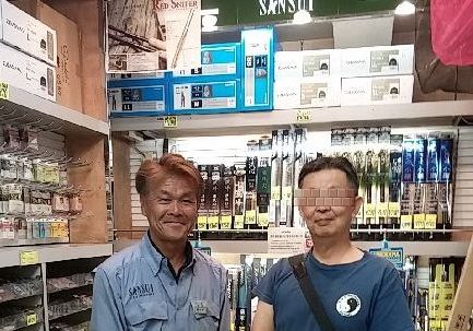 渋谷店の渓流 テンカラの品揃えは流石でした。店長とテンカラ釣りの話題で盛り上がり最後にツーショット写真、やはりテンカラについては詳しく自分の質問にも的確な助言を頂けました。短い時間でしたが楽しく情報収集も出来て良い時間を過ごせました。