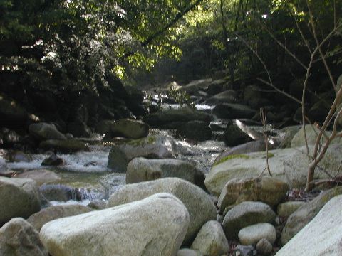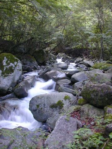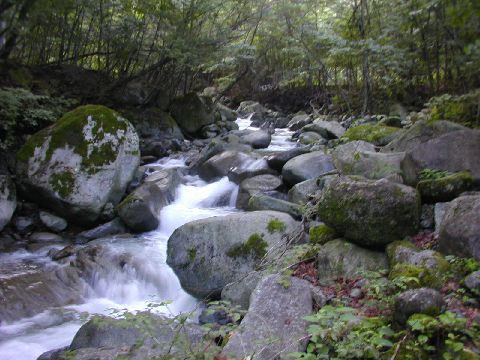 苔むした沢はとても安らぎます。ポイントポイントにイワナ、アマゴが果敢にチャレンジしてきます。家族ひとり2本がリミット、後は山神様に感謝してのリリース