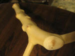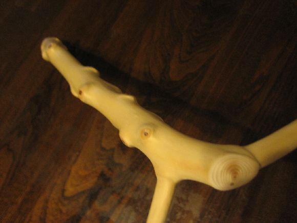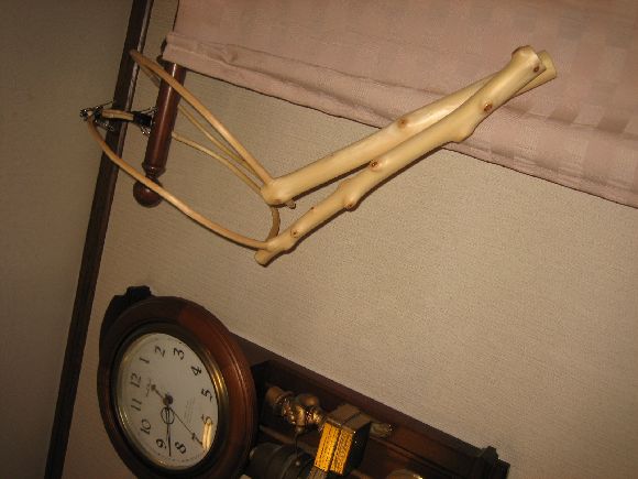 強いて一言感想を言わせていただくと、自然木を最優先にしているのは良く分かりますが使い勝手が良くないとタモの意味をなしません、柄と枠の角度、片手でベルトに差しこむその差し込みやすさその辺の考慮が必要かと思います、ですから限りなく丸くする必要はないと思います、左右の枝の段差は全く気にする事はありません、自然的を重視するにしても実際に魚を取り込む際に都合が悪ければ単なる飾りものです、今日はナデシコで機嫌が良く一杯入っていますのでヨッコ(余計な事)を言ってしまいました、それではおやすみなさい!!!