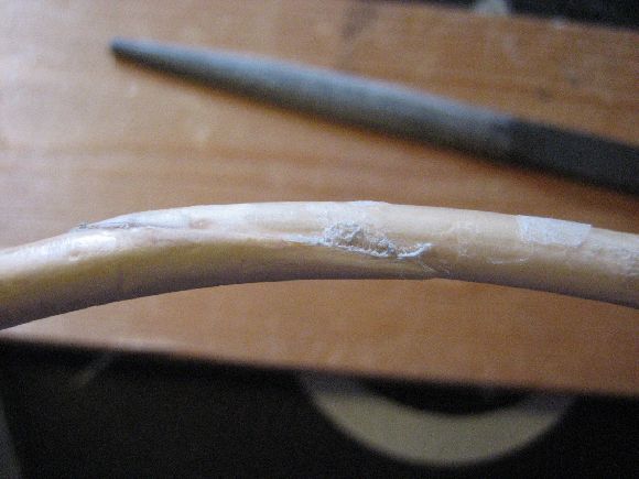 うまく接合できましたね、私は今まで接合部分で放れてしまった事はありません、円形と言う強度の分散とこれから付けるタモ網の針金で強度のカバーが出来ます。