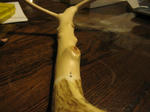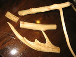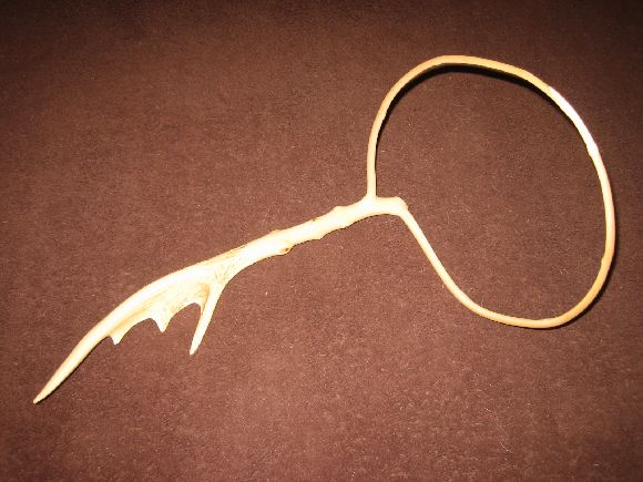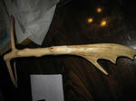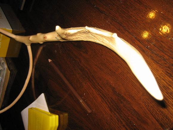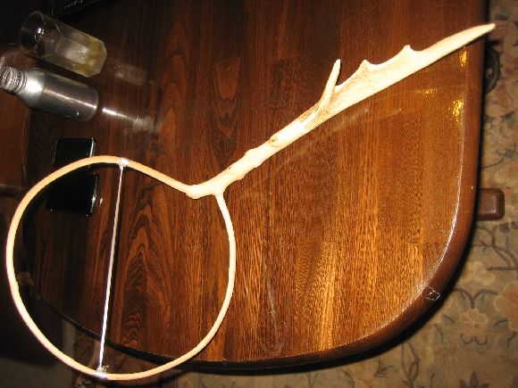 天然木タモの自作 愛着への道 大きめの鹿角を取り付けて柄と枠の角度を少し広げました。