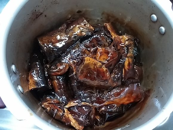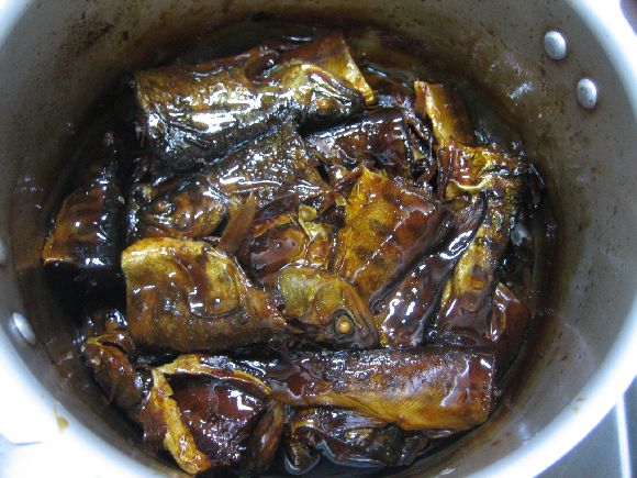 最初は姿に出なく甘露煮にしたらかっこ悪かったのですが鍋が小さいので仕方なかったのですが食べる時にはちょうどいい大きさと都合よくなりこのままです(笑)