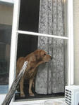 でも最初は煙が沢山出るので遠慮がちになりながらの炭起こしです。レオ蔵君も何をするのか興味深々に庭を見ています。