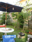大きな夢は無理なりでミニチュアバージョンで庭はお隣さんの借景です。(笑)