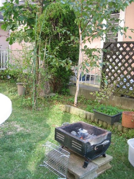 白樺の木の下でバーベキュー、若いころの理想のスタイルでしたが、庭が狭いし周りは家だらけ、はかない夢と消えてしまいました。