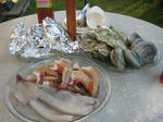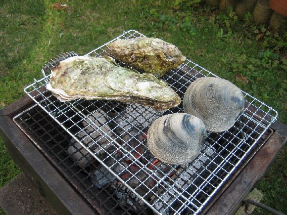 でっかい牡蠣とビノース貝が開くのを待ちます。
