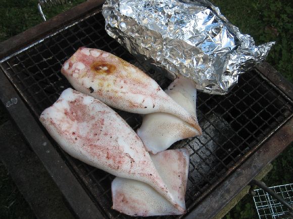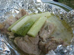 野菜は鳥と長ネギ、アスパラの包み焼きとイカワタのホイル焼きとこれがまた美味しい。