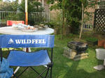 ここの所の天気に気持ち良く庭で食事です。