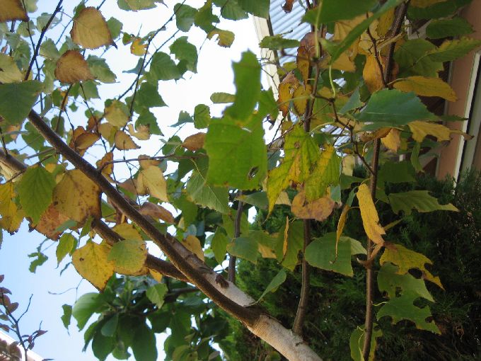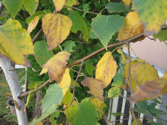 白樺を見ると、庭の紅葉はまだ始まったばかりのようですね。