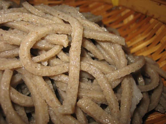 水加減と捏ねが難しいく以前に修復不能の失敗をした蕎麦です(^_^;)