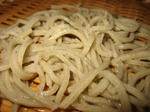蕎麦ぶち工程を目の前で拝見して早速せいろ蕎麦をお願いしましたところ、まずは生蕎麦を食べさせていただき、質問 ゆで時間は???