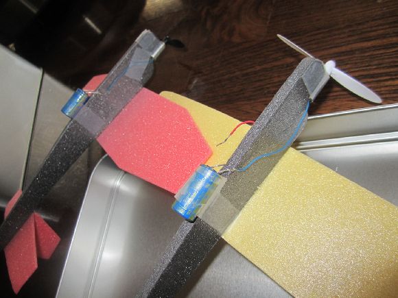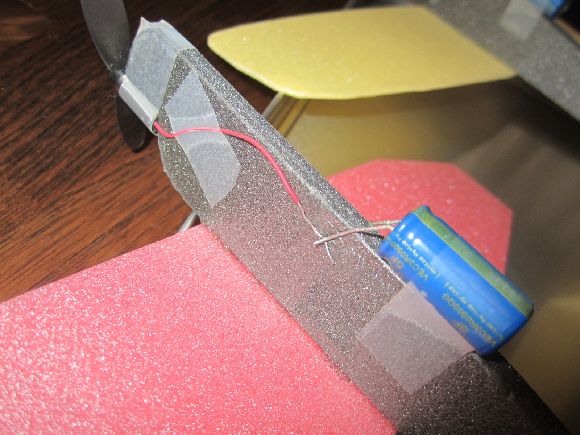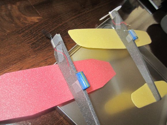 プロペラにモーター、コンデンサーを取り付けました。