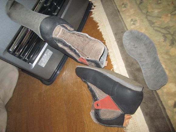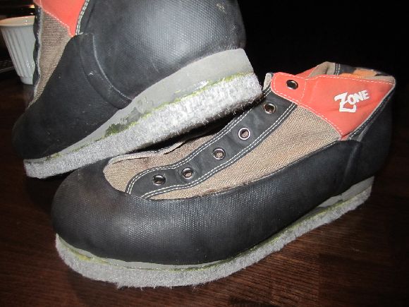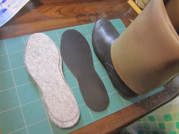 この間に8年ほど前に作った渓流用の長靴の底の貼り替えをしました。